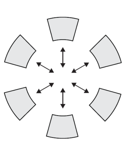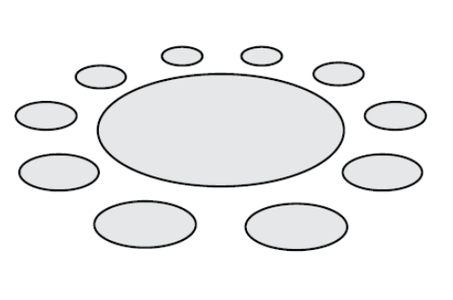 Affiliating and Associating may appear to be similar, but the distinction is worth making. Associating is looser than contracting, venturing, platforming, and even affiliating, but is still an arrangement outward bound. Here the organizations associate for common concerns, rather than affiliating for a specific function.Figure 7 depicts the associates sitting around a table, where they meet periodically to discuss interests they share in common. In diplomacy, for example, the G7 and G20 are associations, whereas NATO is an affiliation, with a military function.